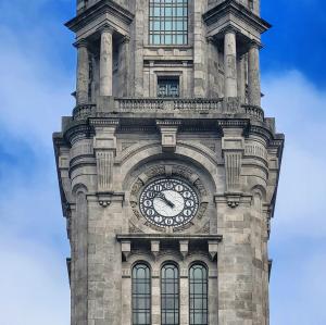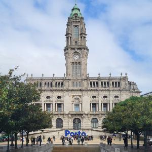 La façade de la mairie est en pierre de granite et ornée d'une douzaine de sculptures représentant des activités importantes à Porto, comme la viticulture, l'industrie ou la navigation. À l'intérieur, bel escalier de marbre noir. La construction de l'édifice s'étala de 1920 à 1957!